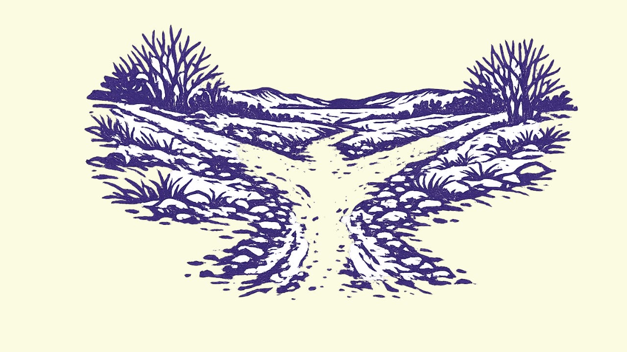 Three roads, one fork, one decision.