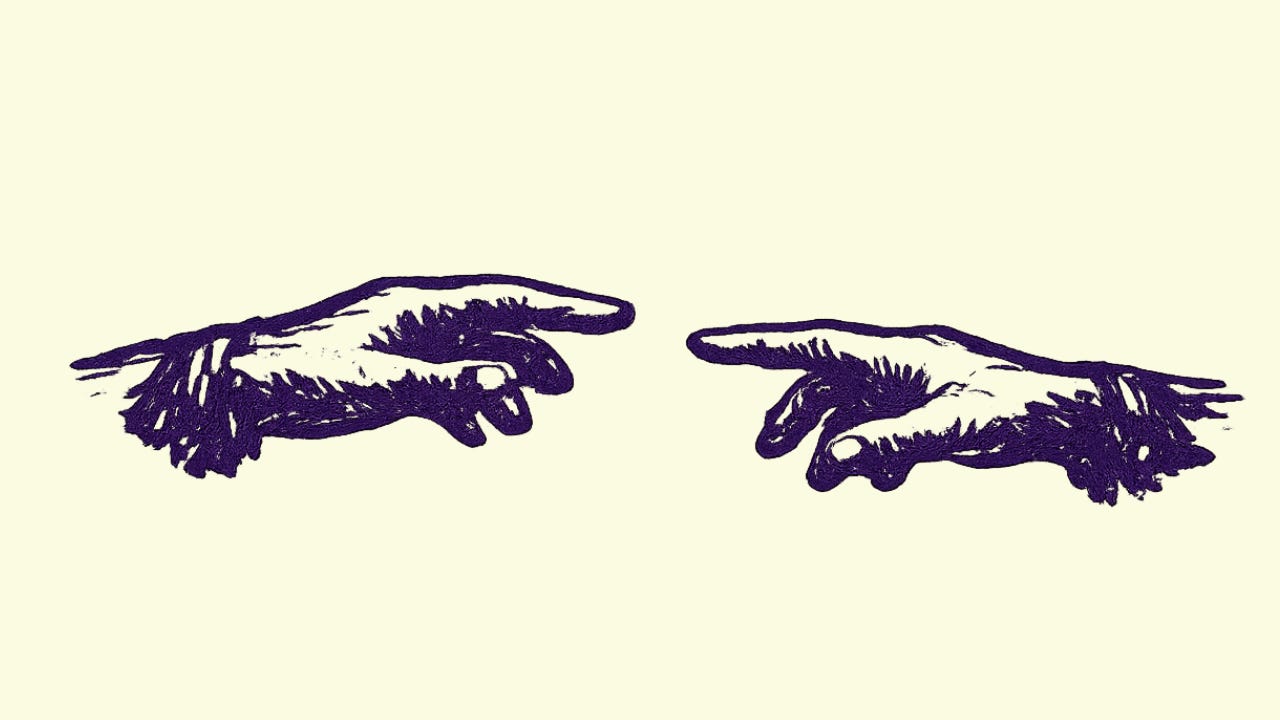 My outstretched arm, toward your outstretched arm -- we draw toward one another.